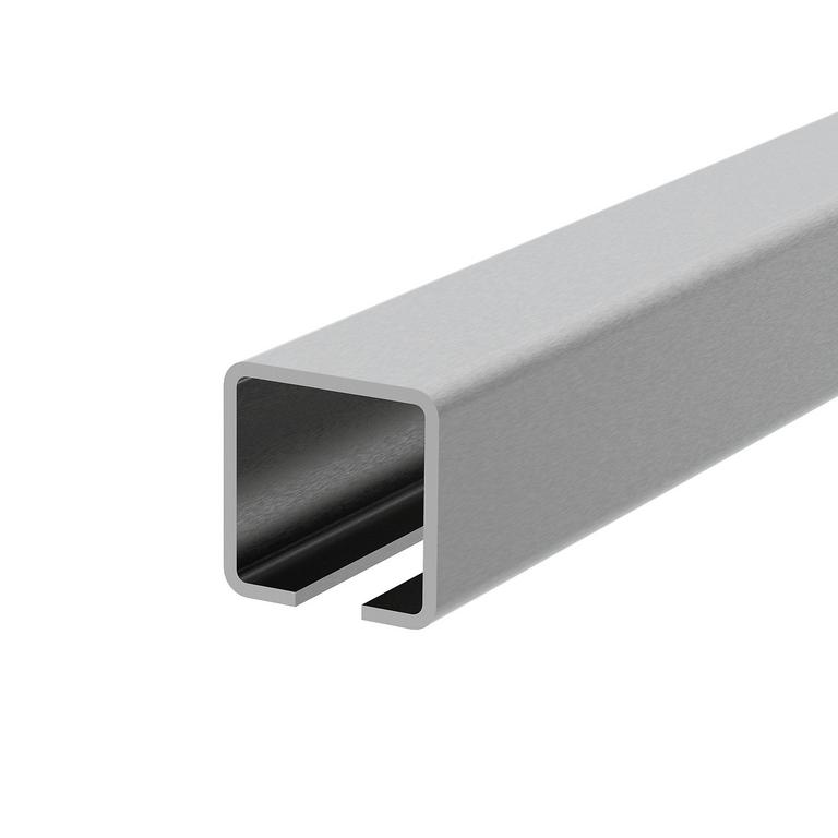 Nerezový vodiaci profil spodného vedenia pre posuvné samonosné brány bez povrchovej úpravy, rozmer 76x76x3mm, určený k privareniu, alebo k priskrutkovaniu na rám brány. Dodávaný v 3m kusoch.