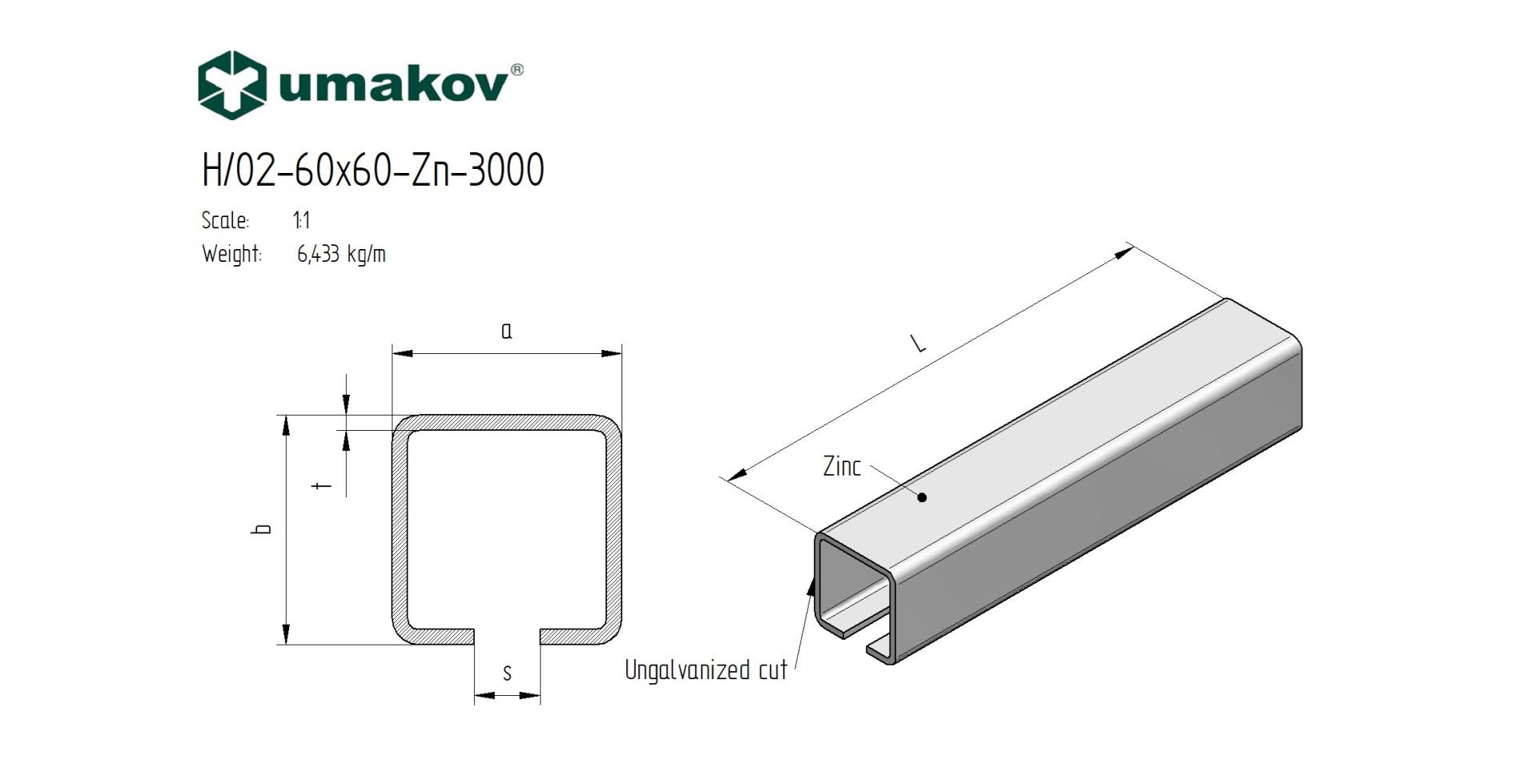 Materiál: Oceľ, Povrchová úprava: Zinok, Značka: Umakov, L: 3000, a: 60, b: 60, s: 15, t: 4