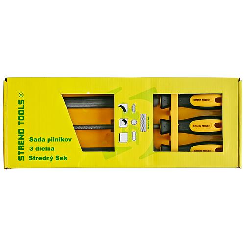 Sada pílnikov 3 dielna, 1x úsečový pilník 200 mm, 1x kruhový pilník 200 mm, 1x plochý pilník 200 mm.