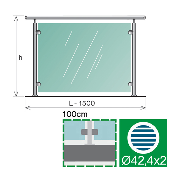 Sklenené zábradlie pre svojpomocnú montáž bez potreby zvárania. Materiály sú dodávané v štandardných dĺžkach, ktoré sú potrebné prispôsobiť reálnej stavebnej situácii. Montáž madla si vyžaduje navŕtanie závitov. Set neobsahuje kotviace závitové tyče a lepidlo.