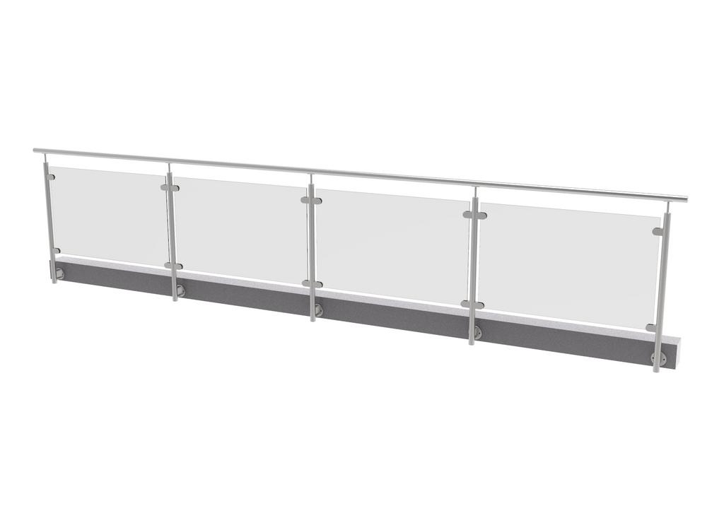 Sklenené zábradlie pre svojpomocnú montáž bez potreby zvárania. Materiály sú dodávané v štandardných dĺžkach, ktoré sú potrebné prispôsobiť reálnej stavebnej situácii. Montáž madla si vyžaduje navŕtanie závitov. Set neobsahuje kotviace závitové tyče a lepidlo.