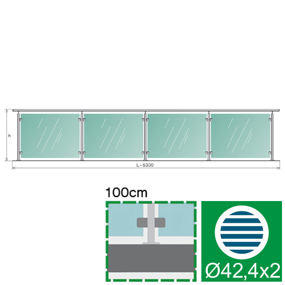 Sklenené zábradlie pre svojpomocnú montáž bez potreby zvárania. Materiály sú dodávané v štandardných dĺžkach, ktoré sú potrebné prispôsobiť reálnej stavebnej situácii. Montáž madla si vyžaduje navŕtanie závitov. Set neobsahuje kotviace závitové tyče a lepidlo.