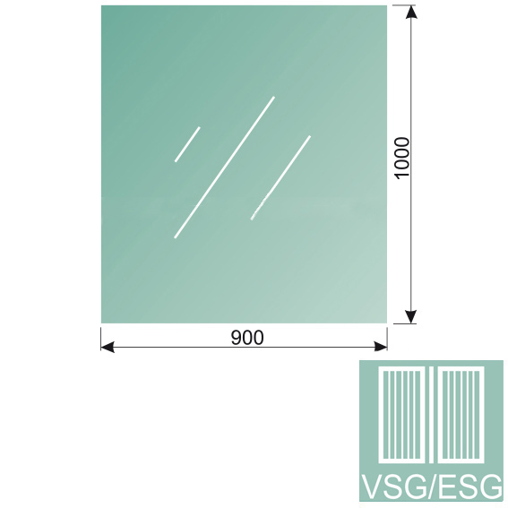 Materiál: Sklo, Povrchová úprava: Kalený, Glass t: 16,76, Vzhľad: Číre, a: 1000, b: 900, Quality: VSG/ESG