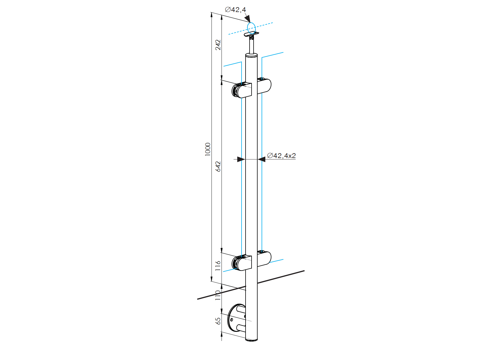 Materiál: Nerez AISI 304, Povrchová úprava: Brus, Glass t: 8,76, Model: Model 250P, Kotvenie: Z boku