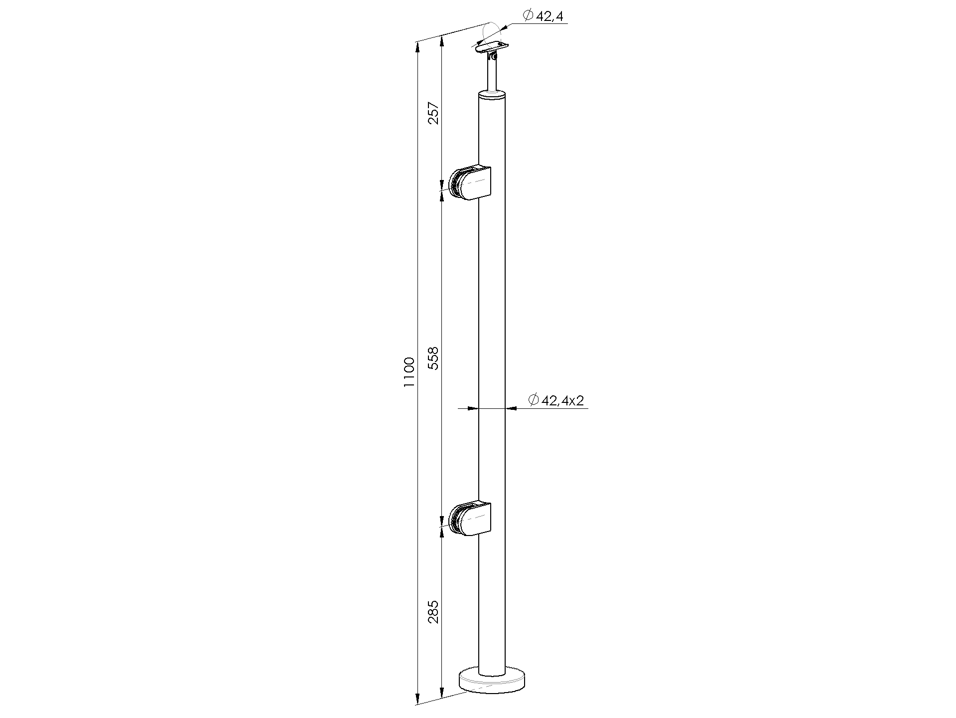 Stĺpik, vrchné kotvenie - ľavý - na schody AISI304