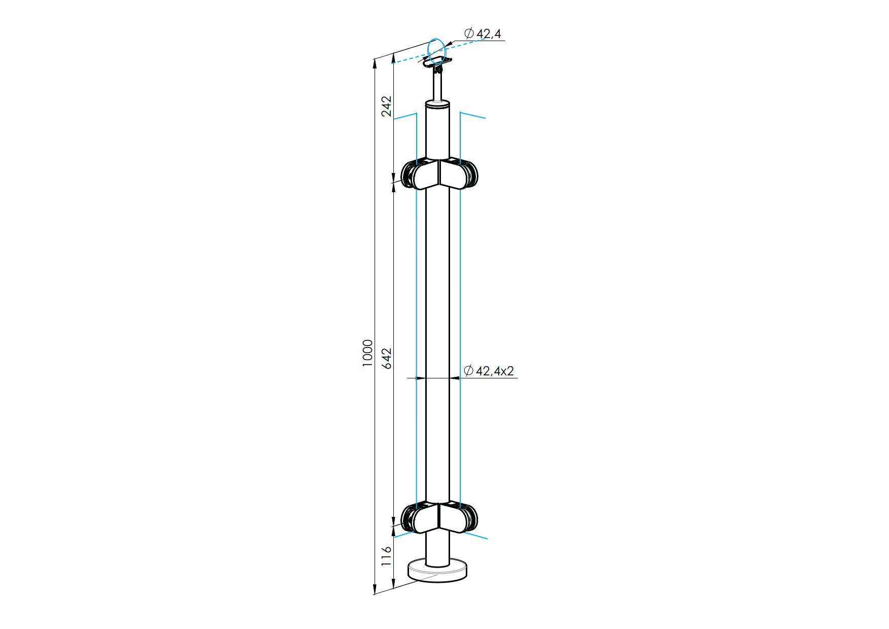 Materiál: Nerez AISI 304, Povrchová úprava: Brus, Glass t: 6-12,76, Model: Model 250P, Kotvenie: Zhora