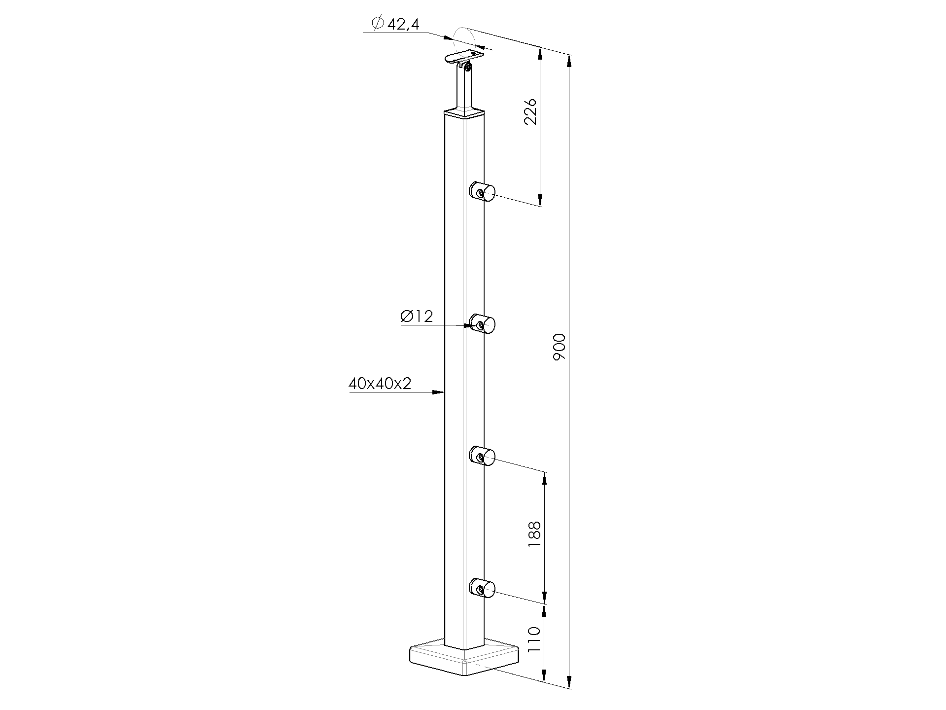 Materiál: Nerez AISI 304, Povrchová úprava: Brus, Použitie: Rovina/900mm, Kotvenie: Zhora