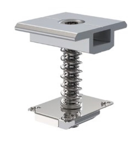 Svorku je možné vložiť z hora do profilu. Nerezová zemniaca podložka s tŕňami naruší vrstvu eloxu čím zabezpečí vyrovnanie el. potencálov medzi panelmi a montážnym systémom. Pružina zabezpečí polohovanie na profile pred dotiahnutím.