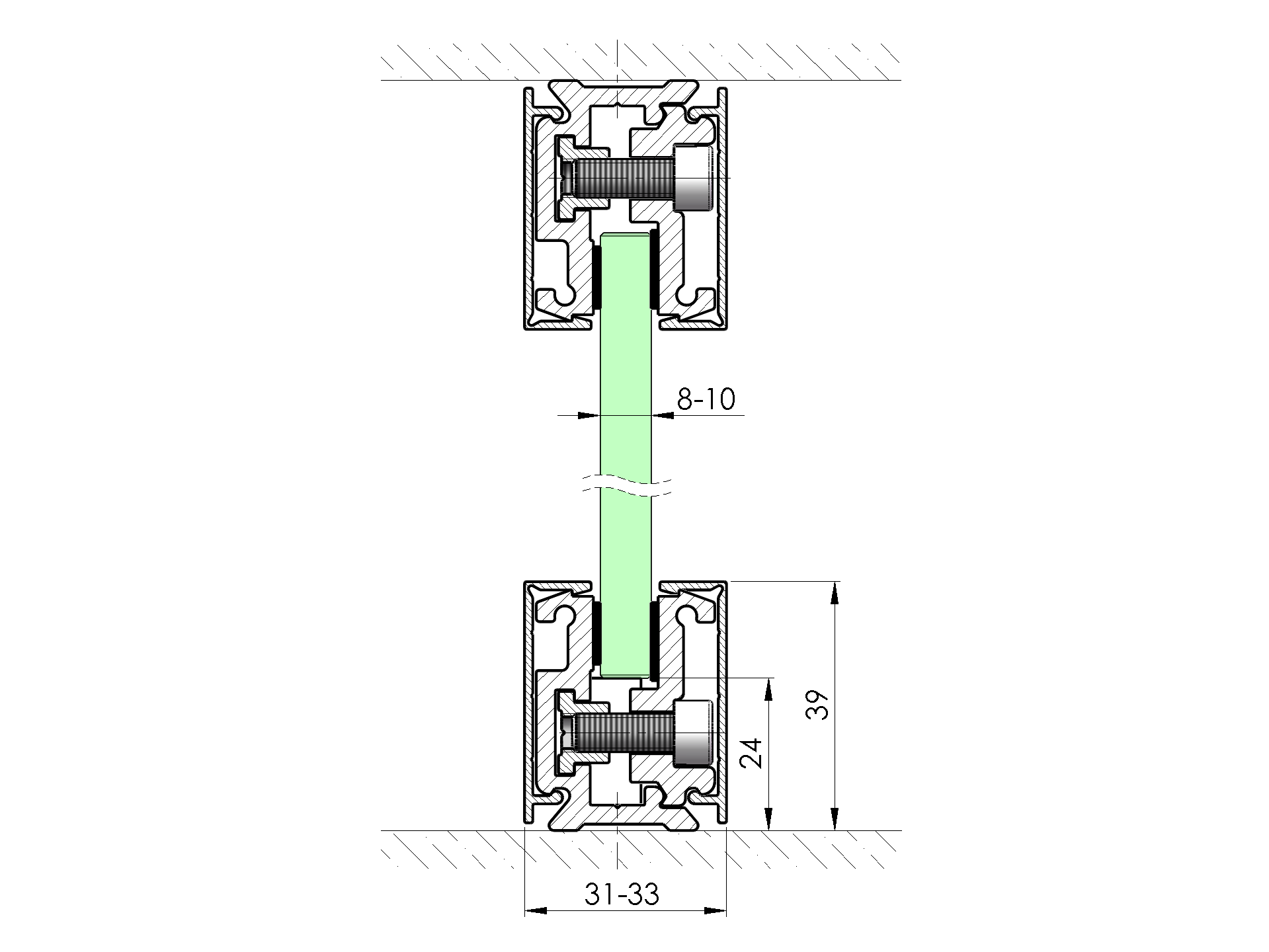 Materiál: Hliník, Povrchová úprava: Eloxovaný, Glass t: 8, Vzhľad: Čierna, L: 3000