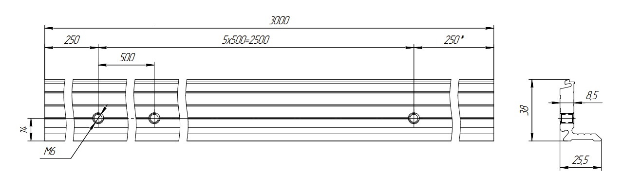 Materiál: Hliník, Povrchová úprava: Eloxovaný, Glass t: 8, L: 3000