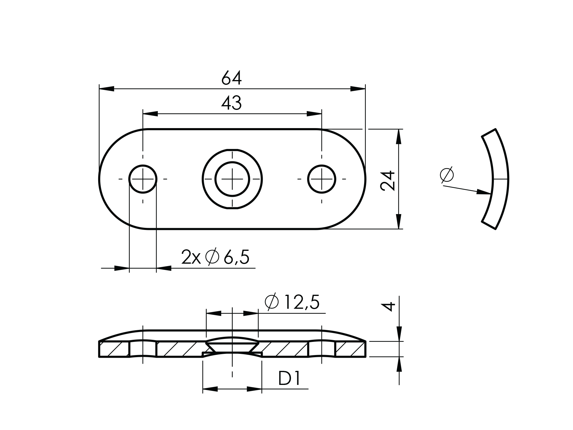 Materiál: Nerez AISI 304, Povrchová úprava: Brus, Vzhľad: Natural, Madlo: D42,4, Phi: 42,4, D1: 14