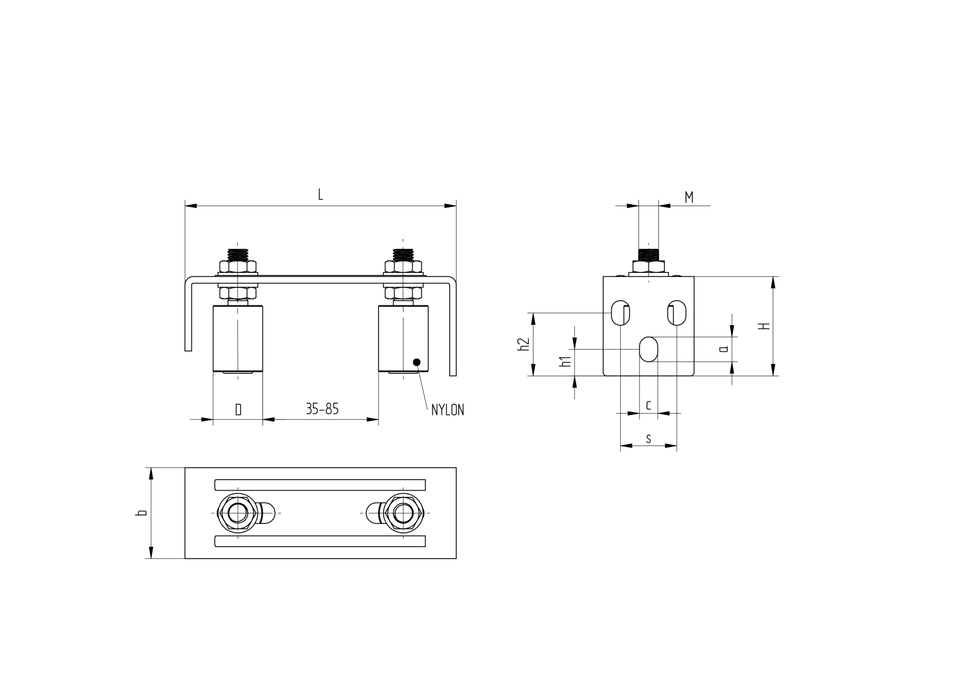 Vedenie horné 2 rolky, INOX, 165x57mm, D30