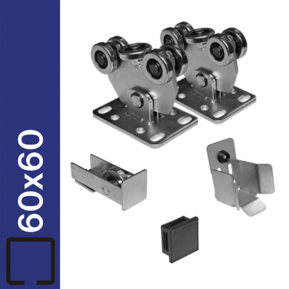Zostava spodného vedenia pre brány do 4 m/200 kg. Komponenty sú žiarovo zinkované. Zostava bez profilu. Určený pre profil H/02-60x60...