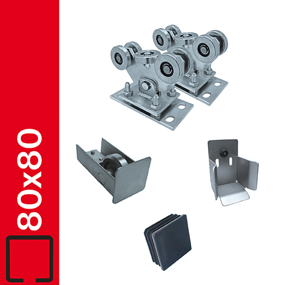 Zostava spodného vedenia pre brány do 5,5 m/275 kg. Komponenty sú žiarovo zinkované. Určené pre profil H/02-80x80... Zostava bez profilu.
