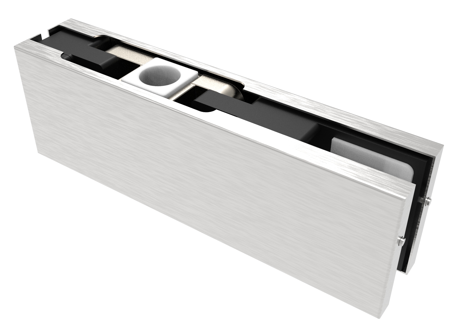 Horný záves. Povrchová úprava nerez brúsená. Pre sklo hrúbky od 10 do 12mm. Možnosť centrovať dieru v rozmendzí +-2.5mm.