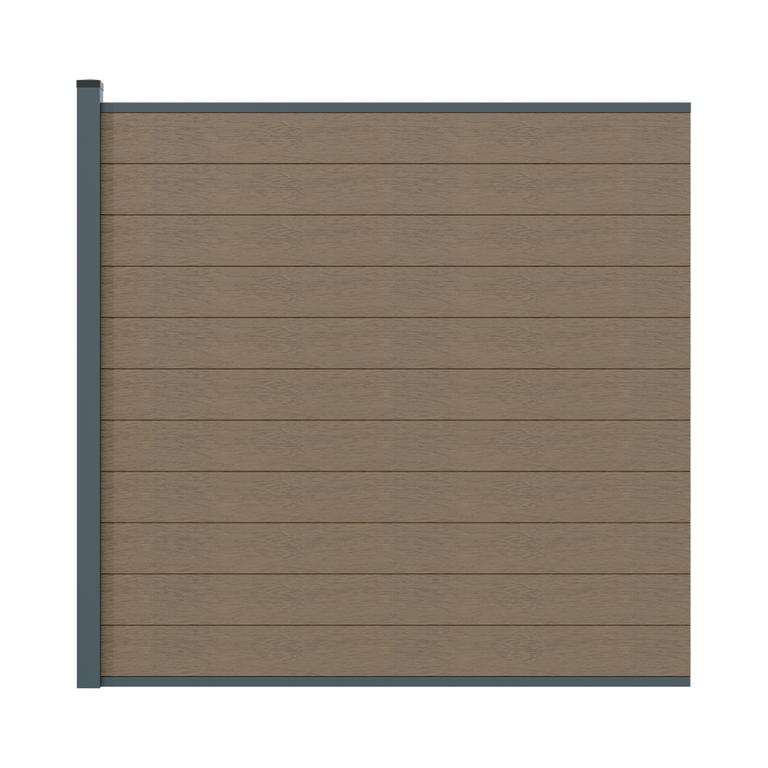 Sada obsahuje : 11x WPC doska hnedá, 1x hliníkový stĺpik RAL7016 s príslušenstvom,
