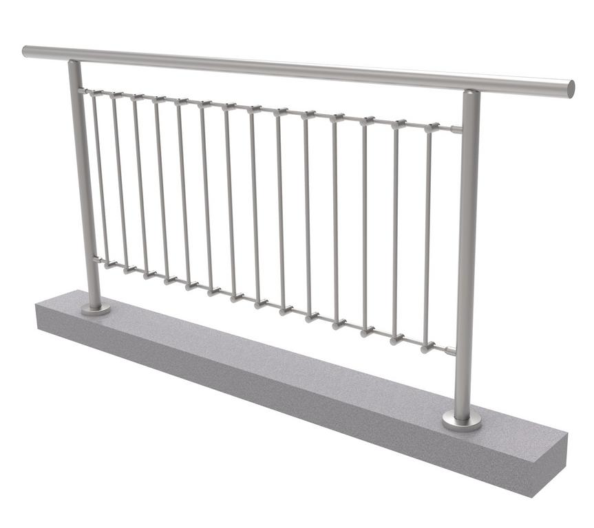 Materiál: Nerez AISI 304, Povrchová úprava: Brus, Výplň: d12 - d12, Stĺpik: D42,4x2, Osový rozostup: 132mm, L: 1980, Madlo: D42,4x2, H: 1000