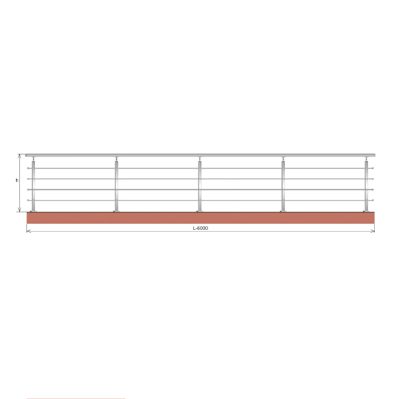 Materiál: Nerez AISI 304, Povrchová úprava: Brus, Použitie: Rovina/900mm, Výplň: d12, Stĺpik: 40x40x2, L: 6000, Madlo: D42,4x2, Kotvenie: Zhora