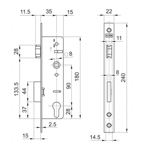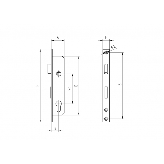 Zámok pre cylin.vložku do JP profilu 50x30mm predná lišta nerez