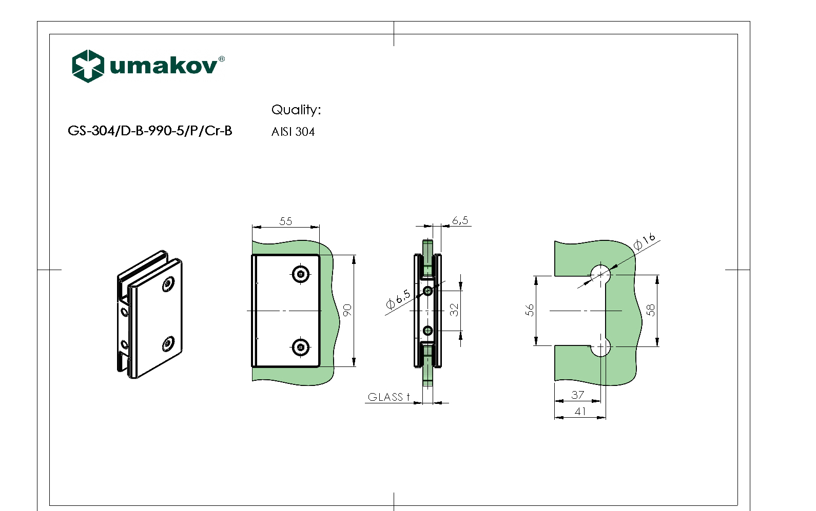 Materiál: Nerez AISI 304, Povrchová úprava: Lesk, Glass t: 8-10, Výplň: Sklo, Gmax(kg)/2pcs: 45, Kotvenie: Na stenu, h: 90, b: 55, Otvor v skle: Áno
