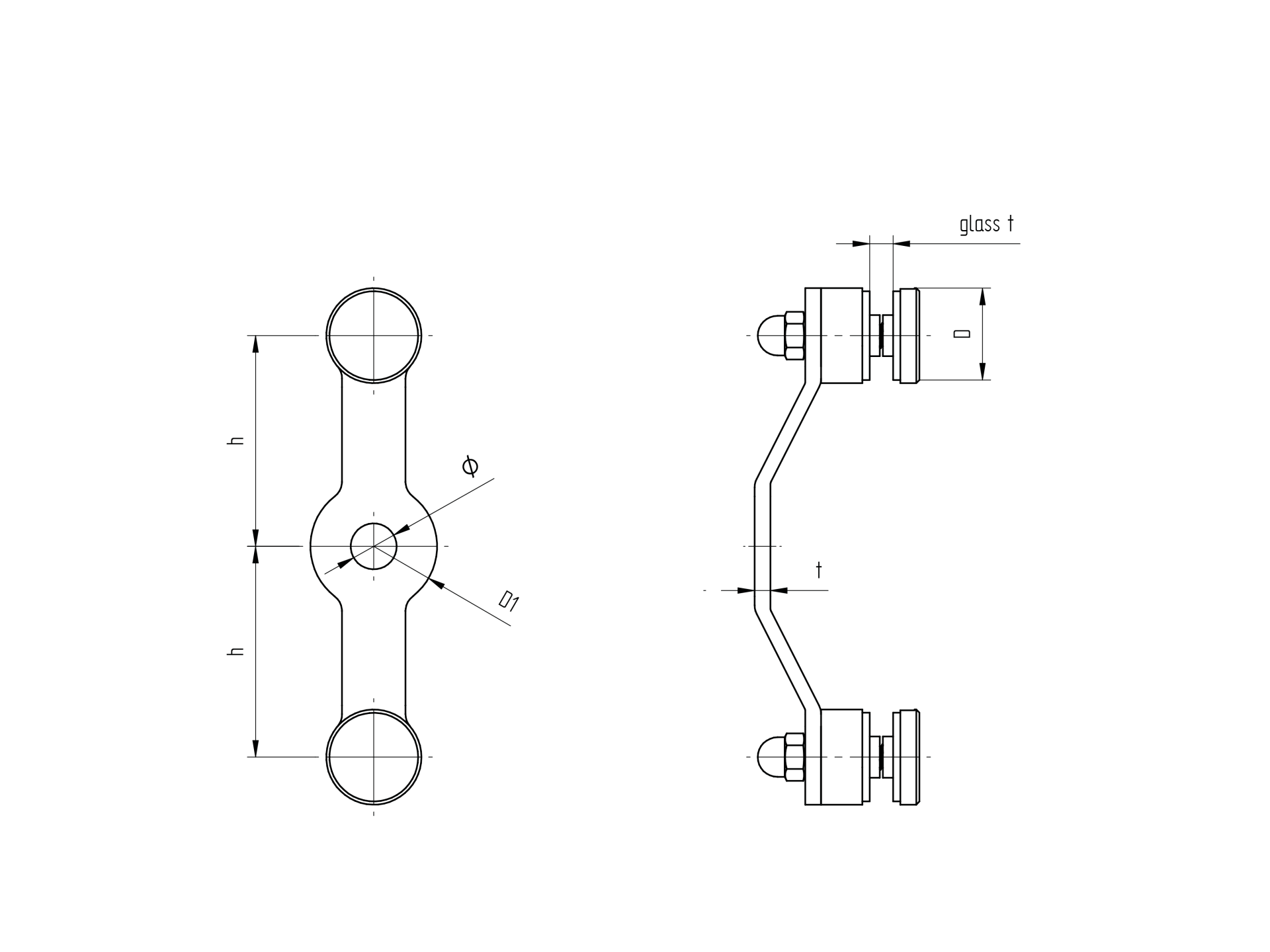 Zasklenie pevné - spider 02 AISI304, 2xD30mm/180°/