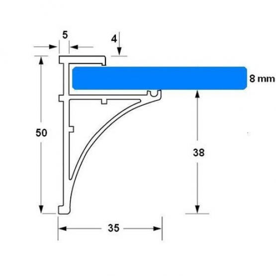 Zasklenie policové pre sklo 8mm L900mm