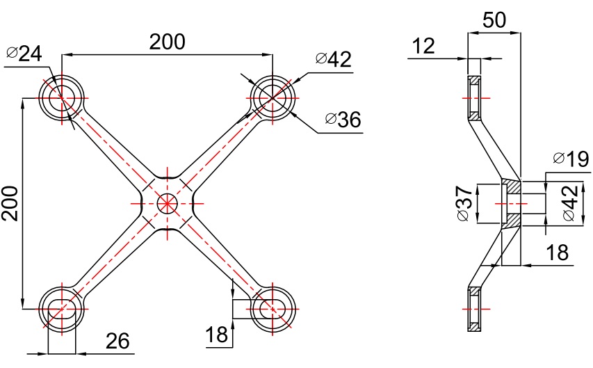 Prípustné axiálne zaťaženie ramena (zaťaženie vetrom) - 2100 N Radiálne zaťaženie spôsobené hmotnosťou skla - 1000 N