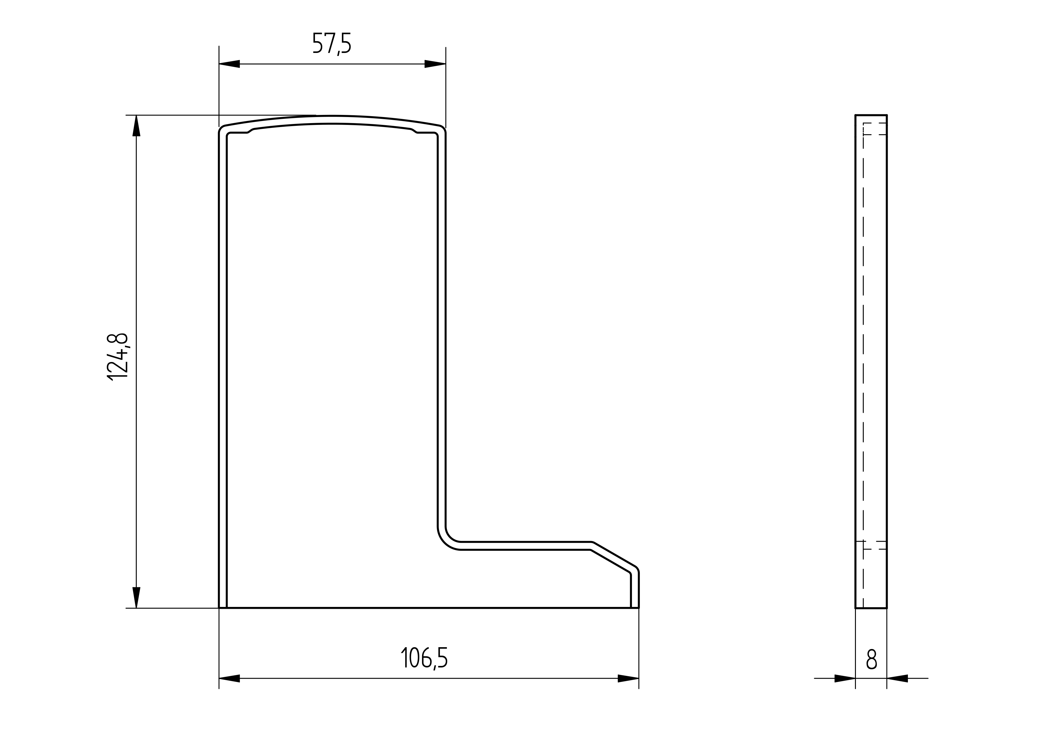 Záslepka (pravá strana) pre profil AL/0006-ECO-5000-S-E, AL/0006-ECO-6000-S-E a AL/0006-ECO-2500-S-E. Povrchová úprava: Brus, Efekt: ELOX