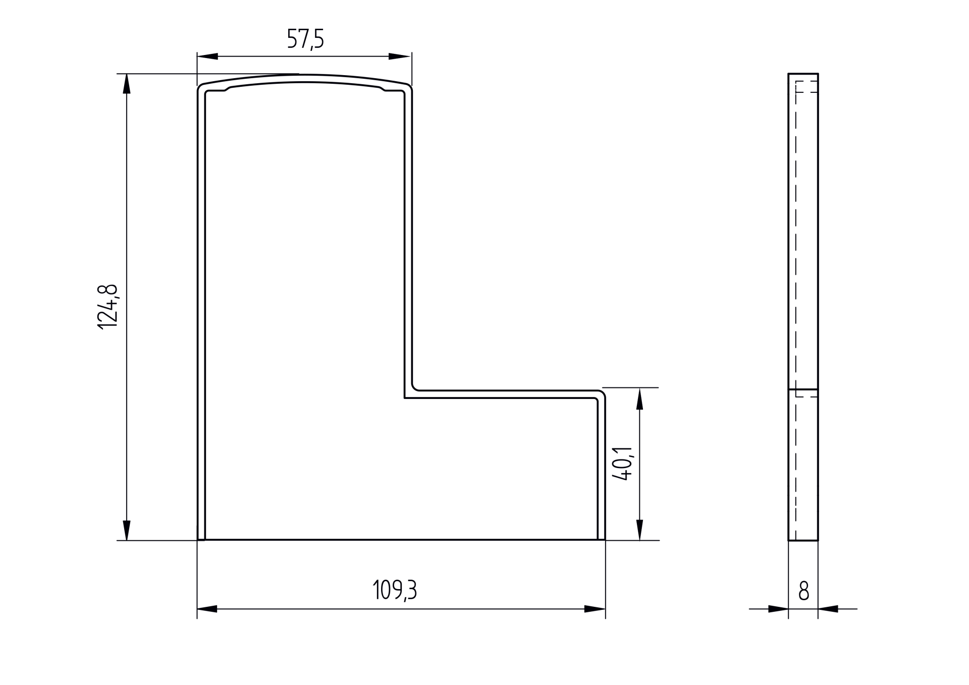 Záslepka (pravá strana) pre profil AL/0006-ECO-5000-S-E, AL/0006-ECO-6000-S-E, AL/0006-ECO-2500-S-E a krycie lišty AL/0026-2500-S-E, AL/0026-5000-S-E a AL/0026-6000-S-E. Povrchová úprava: Brus, Efekt: ELOX
