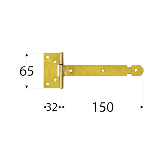 Výška závesu - 65mm, celková šírka závesu - 175mm, povrchová úprava - žltý zinok, počet fixačných otvorov - 6 (d-4mm), 1 (d-5mm).