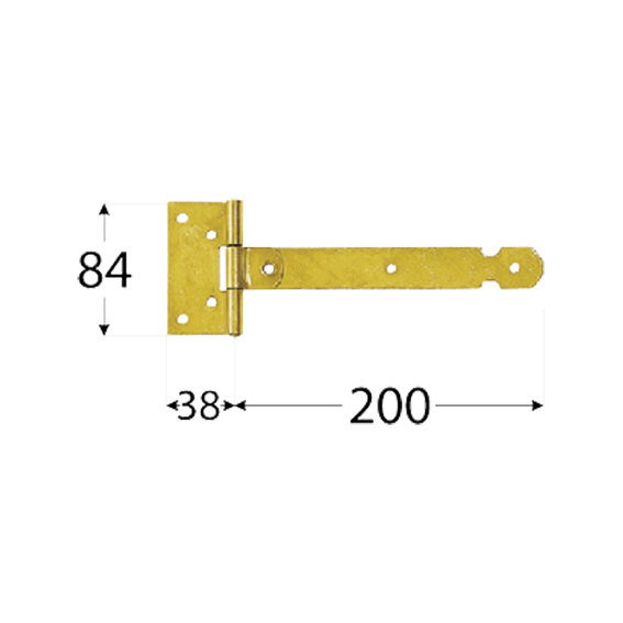 Výška závesu - 84mm, celková šírka závesu - 230mm, povrchová úprava - žltý zinok, počet fixačných otvorov - 6 (d-5mm), počet čtvorcových otvorov 2 (7x7mm).