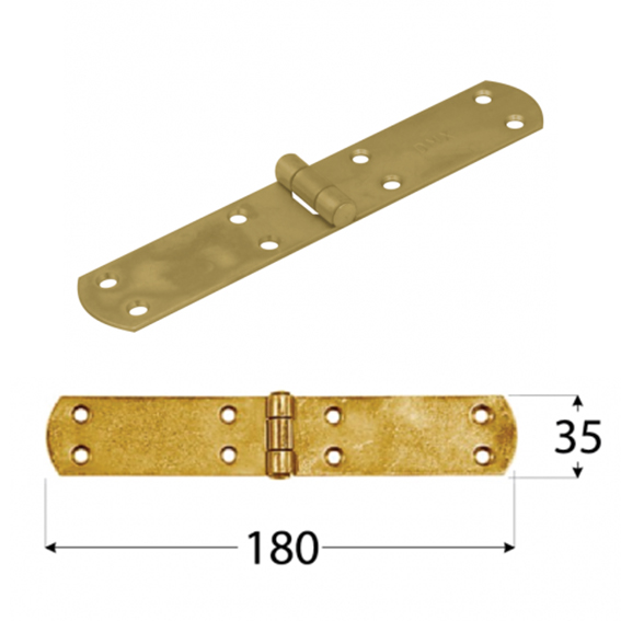 Výška závesu - 33mm, šírka závesu - 180mm, povrchová úprava - žltý zinok.