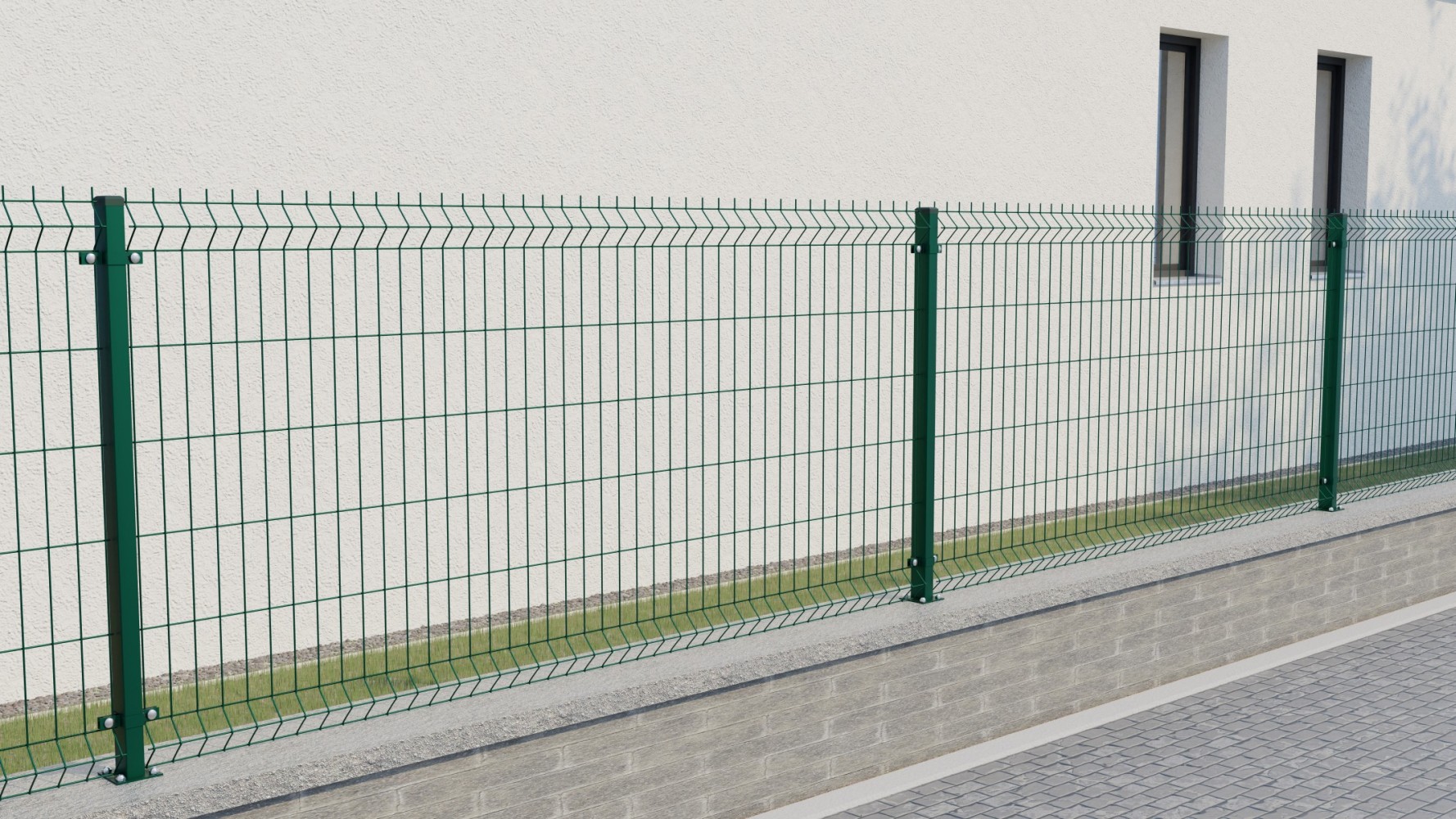 Zváraný plotový panel 3D s výškou 1230 mm a dĺžkou 2500 mm v klasickej zelenej farbe RAL6005.